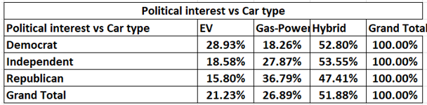 When breaking it down by political parties, all three (Democrats, Republicans, and Independents) were also fans of the Hybrid option. Republicans are the biggest fans of gas-powered vehicles, while Democrats are the least interested in them.
